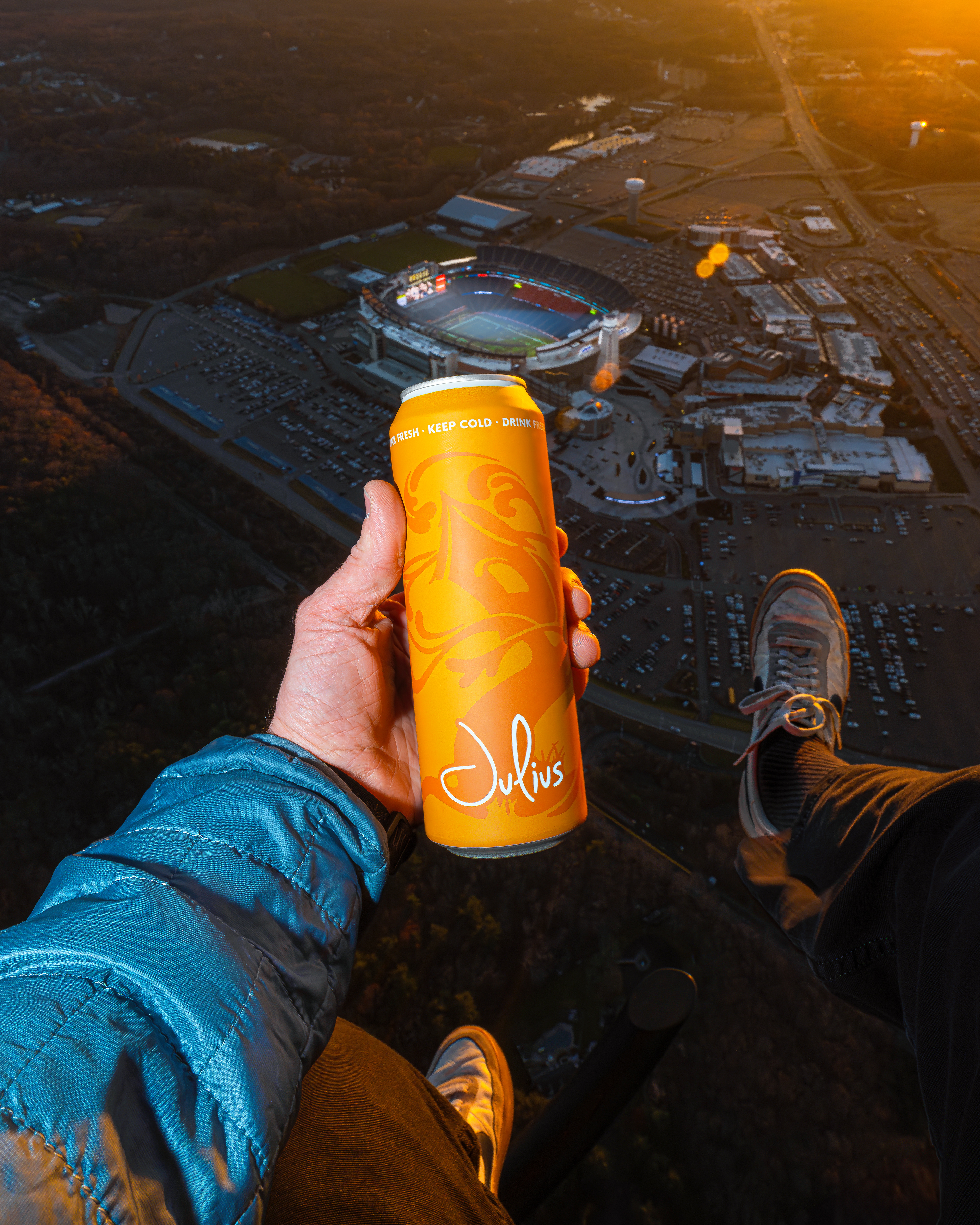 In December of '23 I took to the sky to photograph the new Tree House 19.2 ounce Julius cans in the most epic way possible.